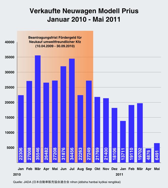 Toyotas Prius führte im Jahr 2010 allmonatlich die Verkaufsrangliste für Neufahrzeuge als Nr.1 an, im ersten Halbjahr 2011 liefert sich Toyota vor allem mit Hondas „Fit“ ein Kopf-an-Kopf-Rennen.