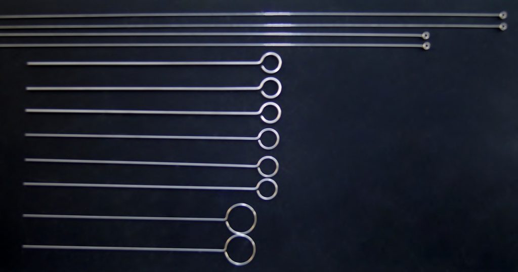 4. Stilette und Mandrins – kostengünstig mit stabiler Qualität Auch eine Vielzahl an Stiletten und Mandrins bietet Mitaka auf Bestellung zu kostengünstigen Preisen an. Die Herstellung ist möglich z.B. mit einseitigem Endring und konischer Spitze bei diversen Beschichtungen. Gefertigt in verschiedenen Edelstählen sind bei Drahtdurchmessern ab 0,2 mm Gesamtlängen von bis zu 1700 mm lieferbar.