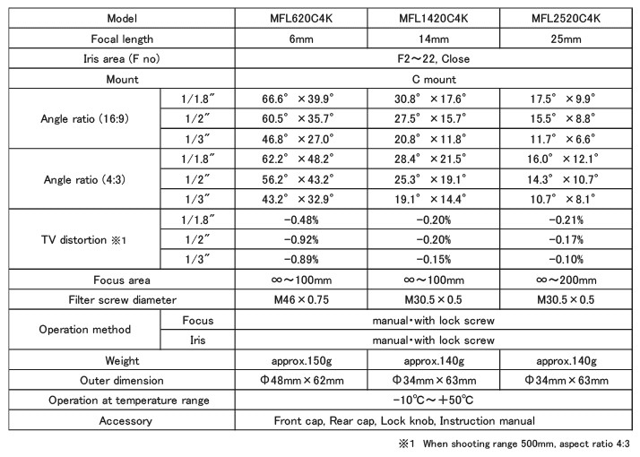 Diese Hochleistungsobjektive werden in den Brennweiten 6 mm, 14 mm und 25 mm angeboten und sind für 3CMOS-Kameras mit 1/1.8″, 1/2″ und 1/3″-Bildsensoren in 4K-/8,3 MP-Auflösung mit Pixelgrößen von 2 µm geeignet.