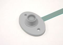 These electrostatic capacitive pressure sensors change their capacity steplessly conforming to the applied load and therefore allow to detect precisely how much pressure is imposed. These sensors are suited for rubber electrostatic switches (for example touch detection) and open up completely new possibilities for intelligent applications.