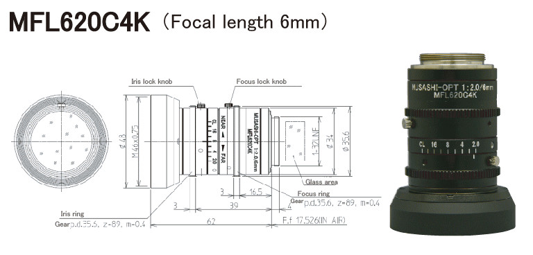 The features of Musashi Opticals new lens series includes: – Exceptional picture quality in the near focussing range: Highest picture quality and ease of use in the near focussing range which is important for machine vision applications. – Focus throw of 340°: The long focus throw allows for more precise focussing without changes in the overall length of the lens. Gears in the aperture and focussing assemblies enable an easy and efficient external operation. – Resilient construction: Lens mount and housing are made from resistant metal made with highest precision – quality made in Japan.